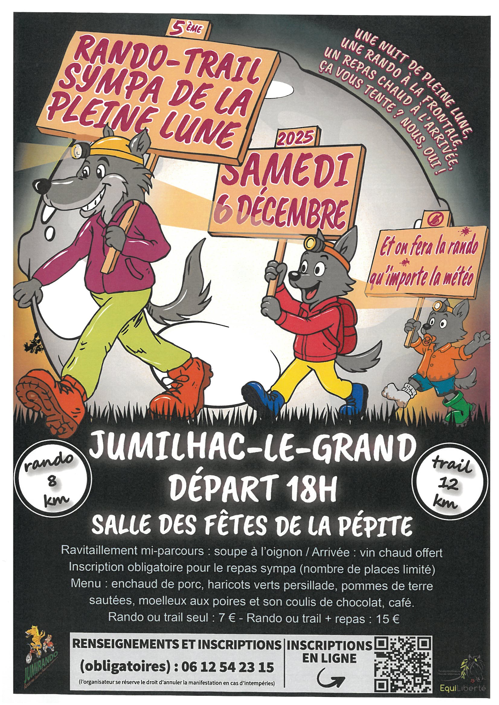 5ème Rando-Trail Sympa de la Pleine Lune organisée par l'association JUMIRANDO le 6 décembre 2025.