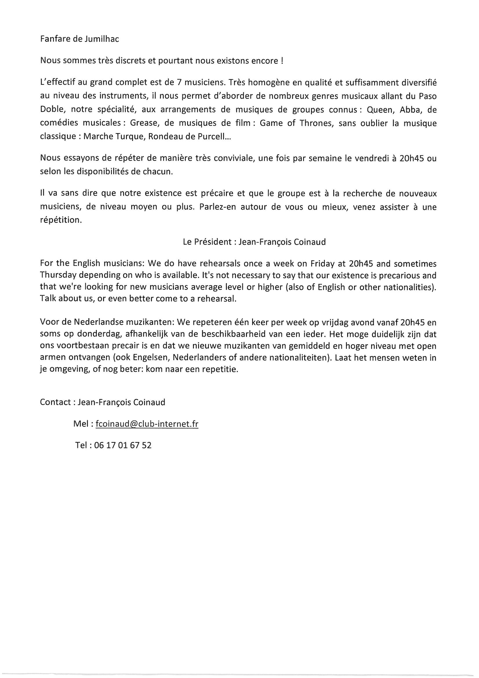 Coordonnées de l'association